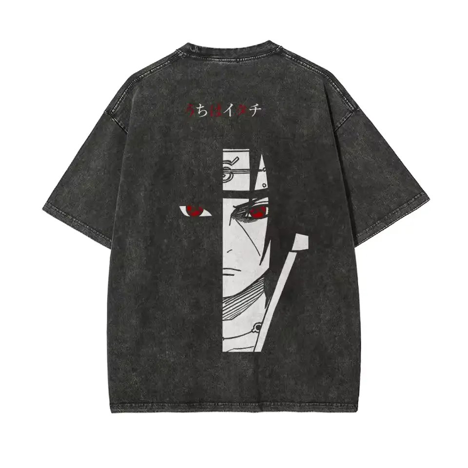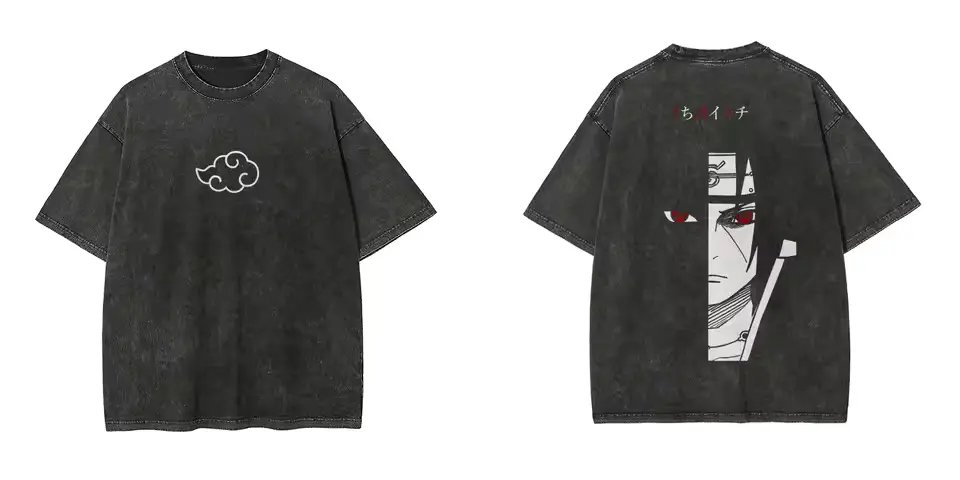 Itachi Uchiha Akatsuki Oversized Tee – Black Acid Wash